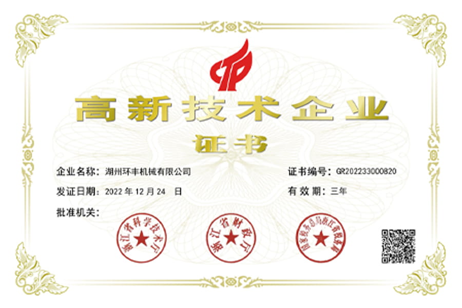 Zhejiang Eyaleti Yüksek Techi Girişim Araştırma ve Geliştirme Merkezi Sertifikası